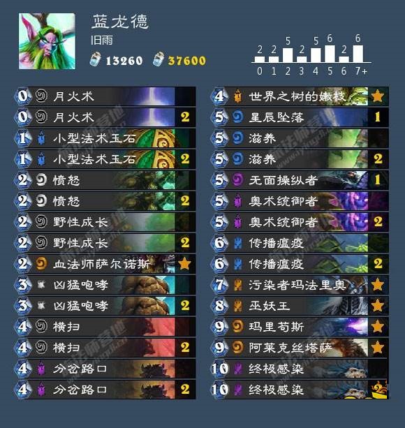 这套牌之所以强,是因为德鲁伊本身的跳费体系和蓝龙月火的标准12斩杀。