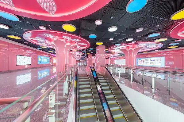 宁波轨道交通5号线车站装修设计以“璀璨甬都”为文化主题,打造“一线一景”、“一区一色”的七彩车站。
