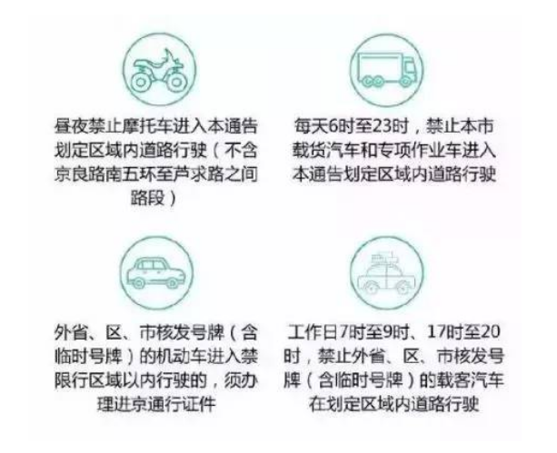 根据《通告》的交通执法要求,交管部门已在主要进京道路和环路沿线增设交通标志,机动车违反规定进入禁行区域道路行驶的,依法进行处罚: