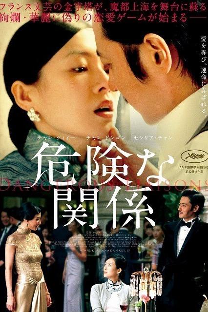 《危险关系》是一部改编自法国作家拉克洛同名小说《危险关系》,由许秦豪执导,章子怡、张东健、张柏芝主演。该片讲述三十年代上海滩,上流社会玩家之间展开了一场对赌,在阴谋、情欲、伦理、战争中,最终三人均陷入了无尽的危险关系。该片于2012年9月27日在大陆上映。
