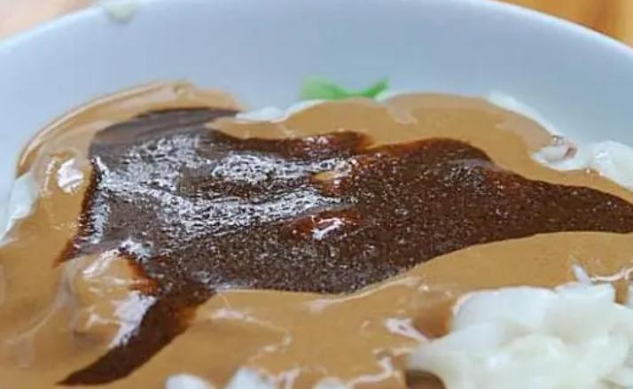 干粿的做法很简单,和普通的干面的做法一样。过热水,晾干入碗,加上沙茶酱,葱花。快速搅拌,再搭配上一碗猪杂汤。