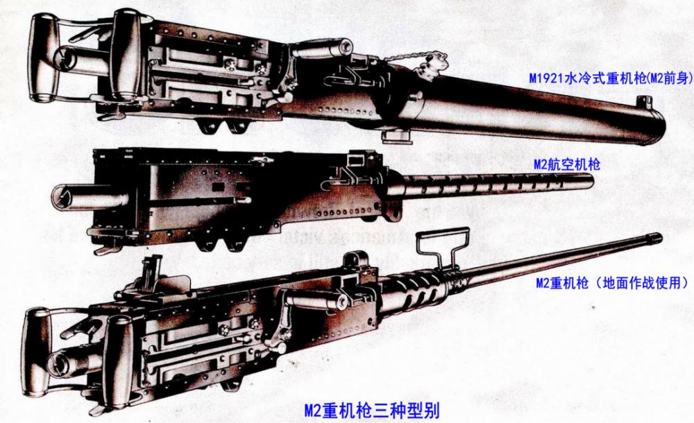 勃朗宁M1921水冷式机枪亦叫作M2,全称为Browning Machine Gun,Cal. .50,M2,Water-Cooled,Flexible,但勃朗宁M2没有水冷型号。
