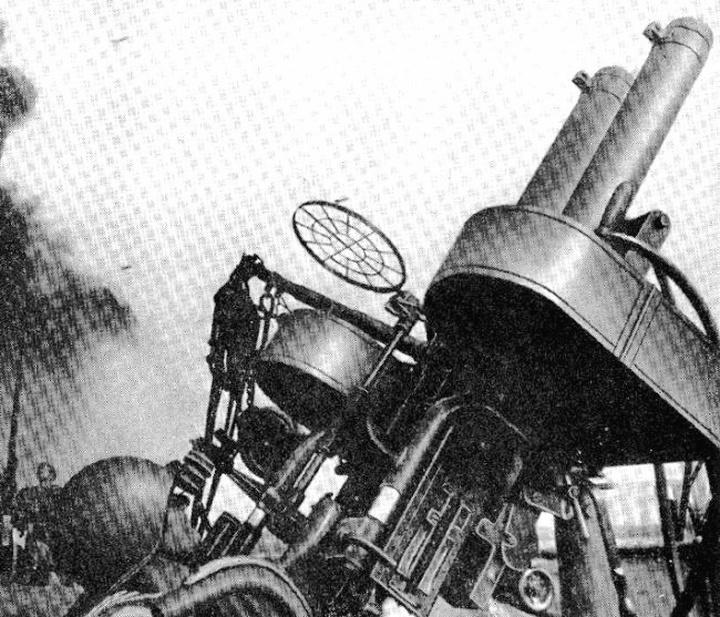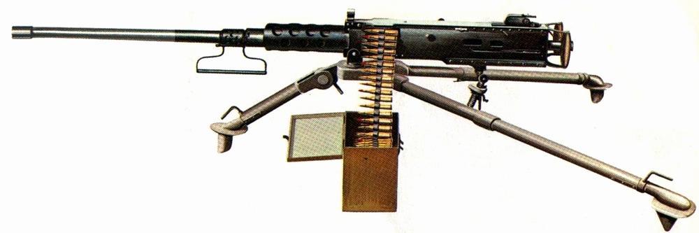 M2式勃朗宁大口径重机枪是在M1917式勃朗宁重机枪(7.62毫米口径)的基础上研制的放大版机枪,于1921年正式定型,列为美军的制式装备。美军当时命名为M1921,装有水冷散热装置,该枪增加了一个液压缓冲器,以吸收过大的枪管后坐力,并且液压缓冲器内油的流量可调,射速随着流量可变。1923年M2正式采用“Machine Gun, .50 Calibre, M1921”的名称,随后该水冷式弹链供弹机枪成为美国陆军和海军的主要防空武器。