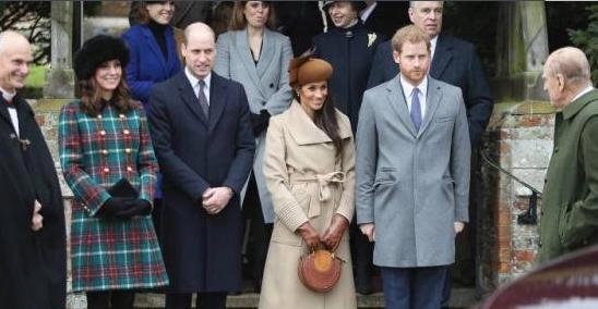 2017年12月,凯特·米德尔顿、威廉王子、梅根·马克尔和哈里王子四人组在前往圣诞教堂参加服务时首次亮相,当女王到来时众人行屈膝礼。