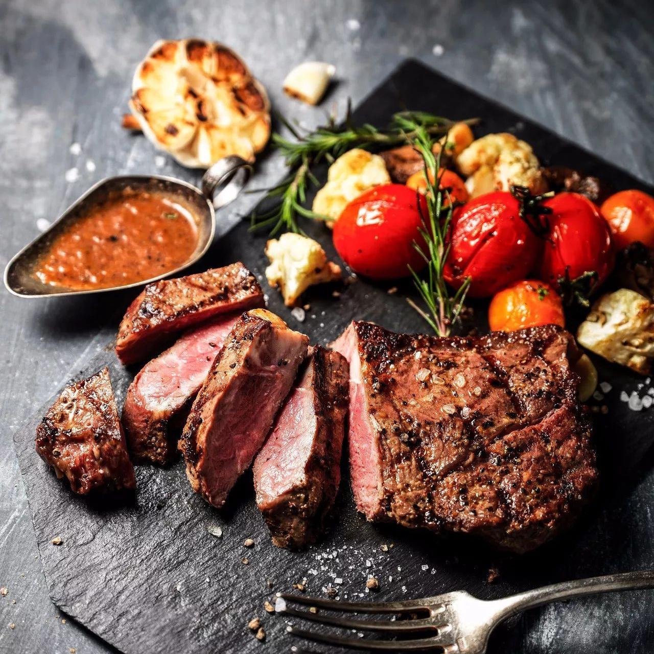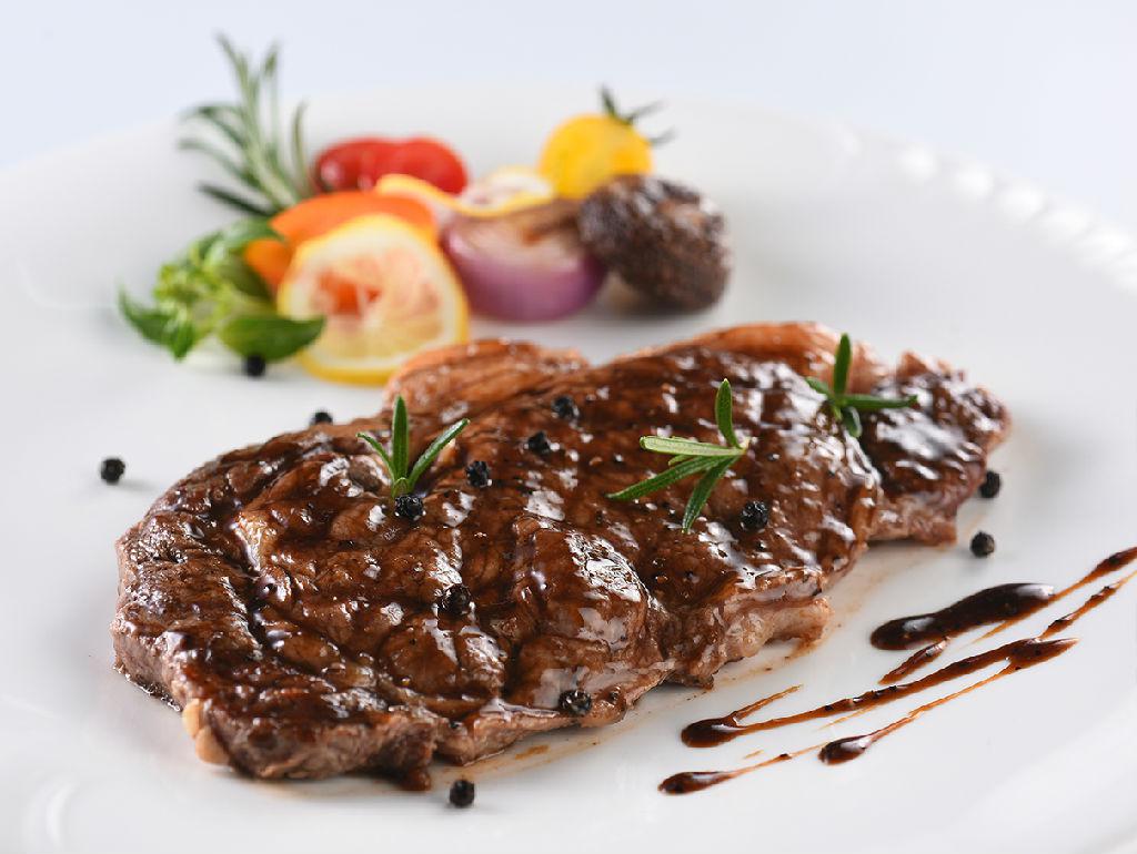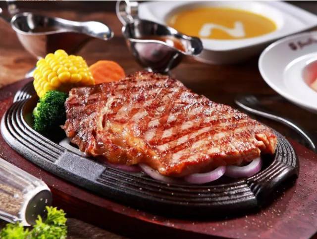 肉细多汁,口感鲜嫩。煎制牛排也有很多讲究,既要能够将牛肉表面迅速加热,又不能使它们的纤维破裂,这就需要厨师的经验和手艺。