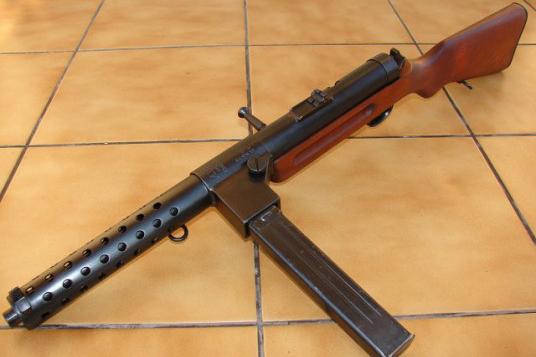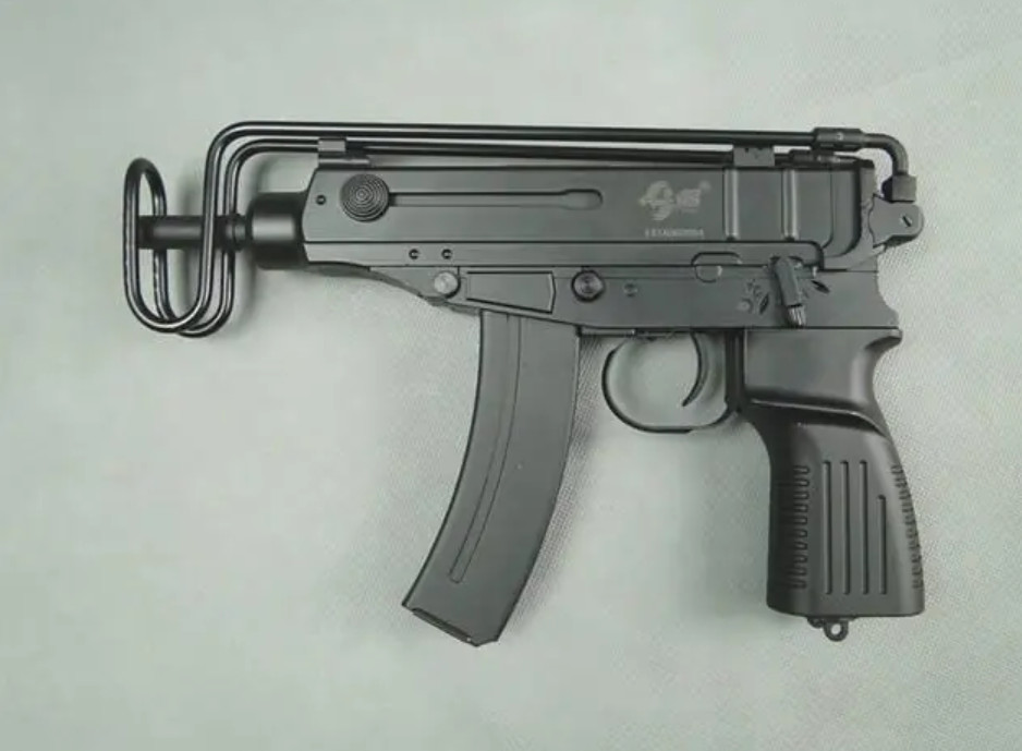 蝎式 “蝎”式(Scorpion)冲锋枪,是由原华约国家捷克斯洛伐克生产的口径为7.65mm的M61式冲锋枪,体积不比战斗手枪大多少,所以有人认为它应该算作冲锋手枪。它的设计初衷确实是作为一种双用途武器,既可像冲锋枪那样双手抵肩连发射击,又可像手枪那样单手不抵肩单发射击,它既可以作为近距离战斗中的突击武器,也可以代替手枪作为个人防卫武器。其大小很适合被车辆司机或飞机驾驶员携带或使用。虽然它的实战效果不太理想,然而,该枪在轻武器史上却占有一席之地。该枪在捷克被警察、安全部队和反恐怖部队中获得广泛采用。但同样的,由于它尺寸小极易隐藏,而且消声效果极好,因此也被一些恐怖主义组织所使用 | 蝎式冲锋枪 |