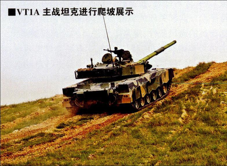 中国VT1A是中国科技人员在以前外贸坦克MBT-2000型主战坦克的的基础上,结合现代战争要求特点研制的新一代外贸主战坦克,由中国北方工业集团公司生产。与基型坦克MBT-2000相比,VT1A在机动、火力、防护、人机环方面有了大幅度提高。VT1A坦克曾多次进行实车试验展示,通过机动性、实弹射击等一系列展示及整车功能介绍,反映了我国坦克制造业发展的新水平。