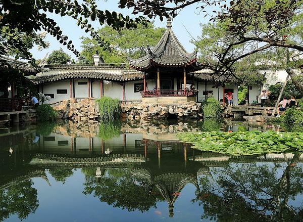 拙政园是苏州有名的园林,全园以水为中心,萦绕错落有致的假山及精致的庭院建筑,花木并茂。这一江南园林典范与北京颐和园、承德避暑山庄、苏州留园并称为“中国四大名园”,并被列入世界文化遗产名录。1