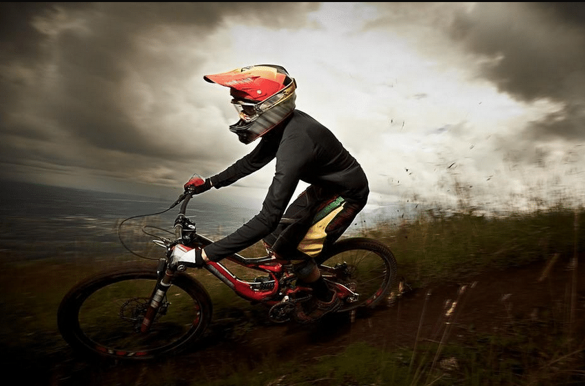 登山车选手所骑的山地车,长久以来,都与越野赛所乘骑的山地车一样,只是在前叉多装上较长距的减震器。几乎所有下坡赛的骑士们都选择登山车,它的减震器伸缩距离至少达到6英吋以上,重量比一般的越野登山车要超过10到15磅(20-30kg)。在下坡赛所使用的车身一定要非常的坚固,因为下坡时的冲撞力量,会由前叉传到车架,普通的山地车是承受不住的,甚至会造成车架的支解,在这个大前提下,重量已经不是下坡登山车的主要考虑因素,坚固才是重要。