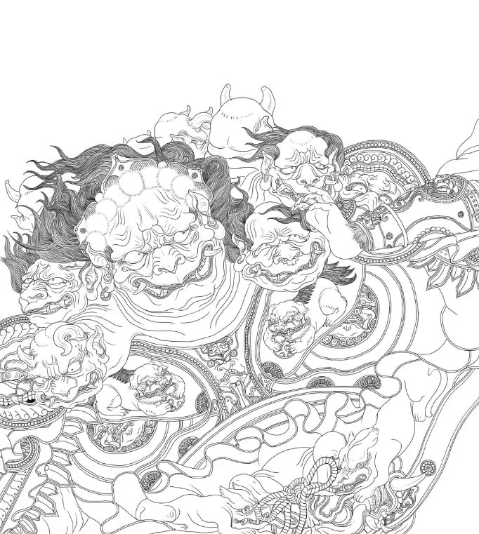 毛羽铺锦,团身结絮。方圆有丈二规模,长短似鼋鼍样致。两只脚尖利如钩,九个头攒环一处。展开翅极善飞扬,纵大鹏无他力气;发起声远振天涯,比仙鹤还能高唳。眼多闪灼幌金光,气傲不同凡鸟类。