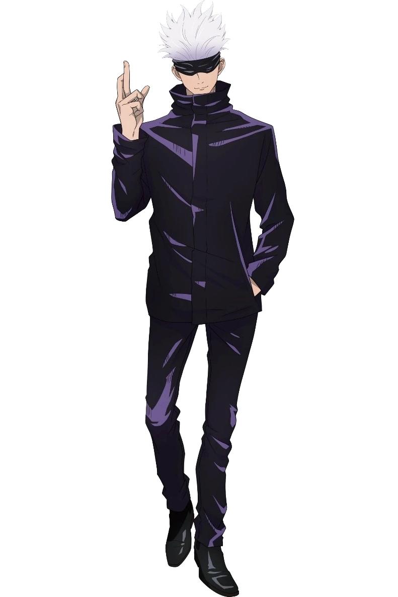 出场时穿着高专的黑色制服,此装扮下会束黑色眼罩。日常便装会垂下头发戴上墨镜。