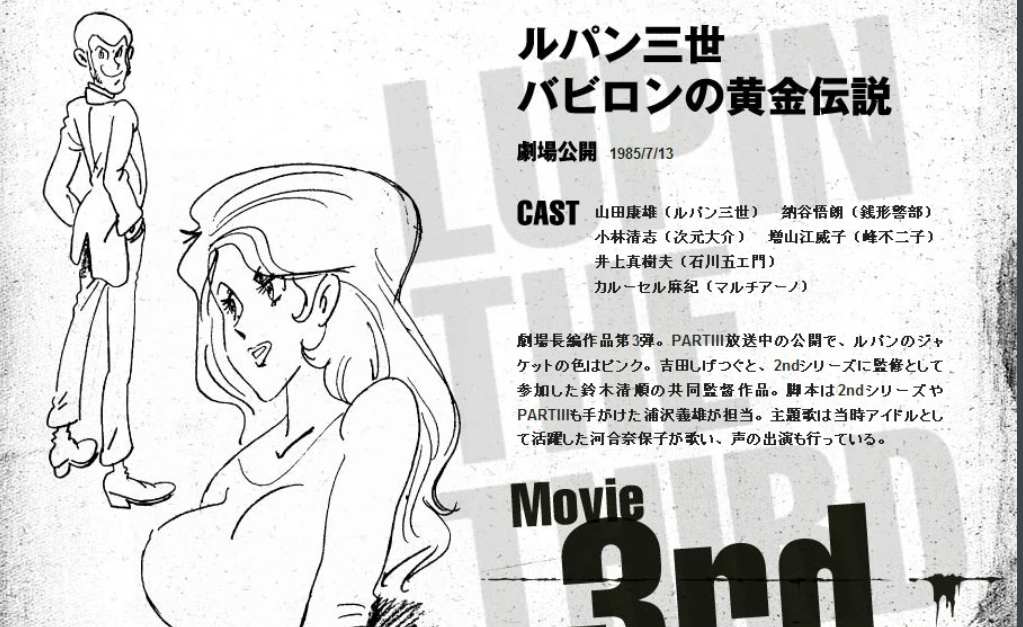 1985年 第三作 鲁邦三世『バビロンの黄金伝说』《巴比伦的黄金传说》监督 铃木清顺 吉田しげつぐ