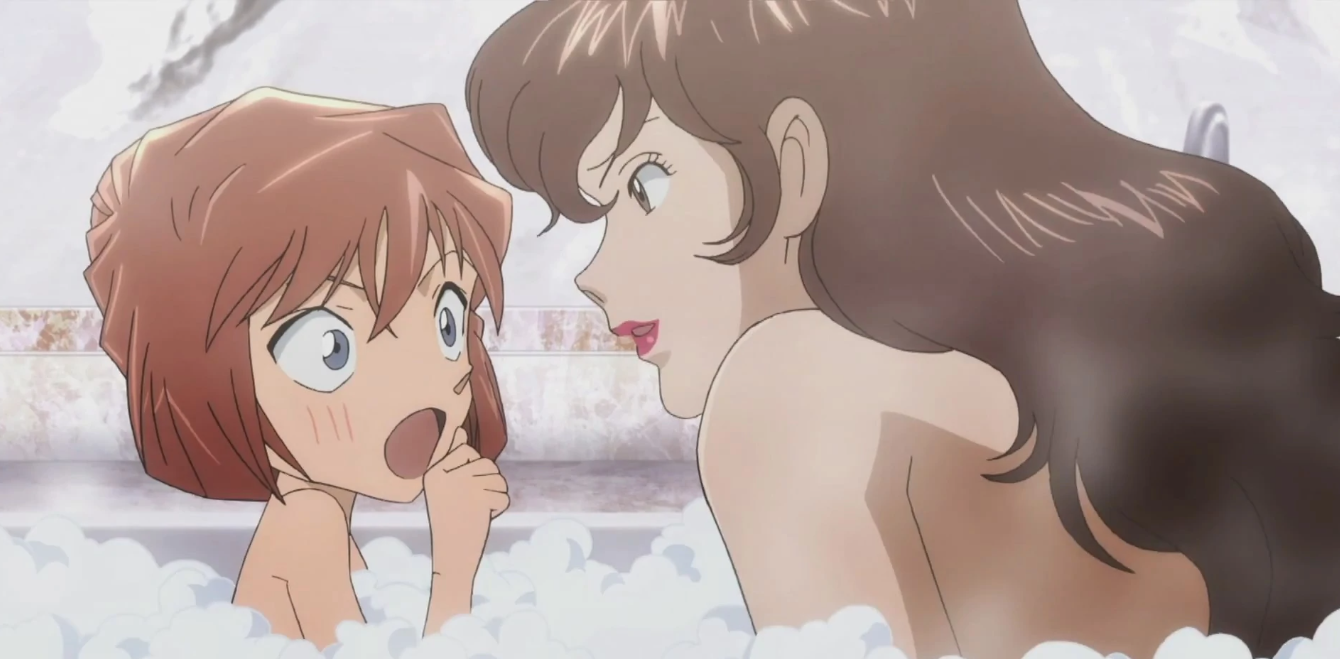 在《鲁邦三世VS名侦探柯南 THE MOVIE》中,峰不二子再次作为鲁邦方女主角登场,并与《名侦探柯南》中人物灰原哀共浴。