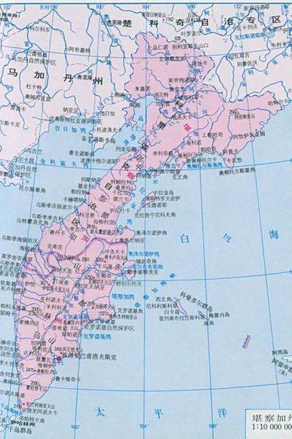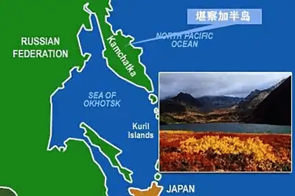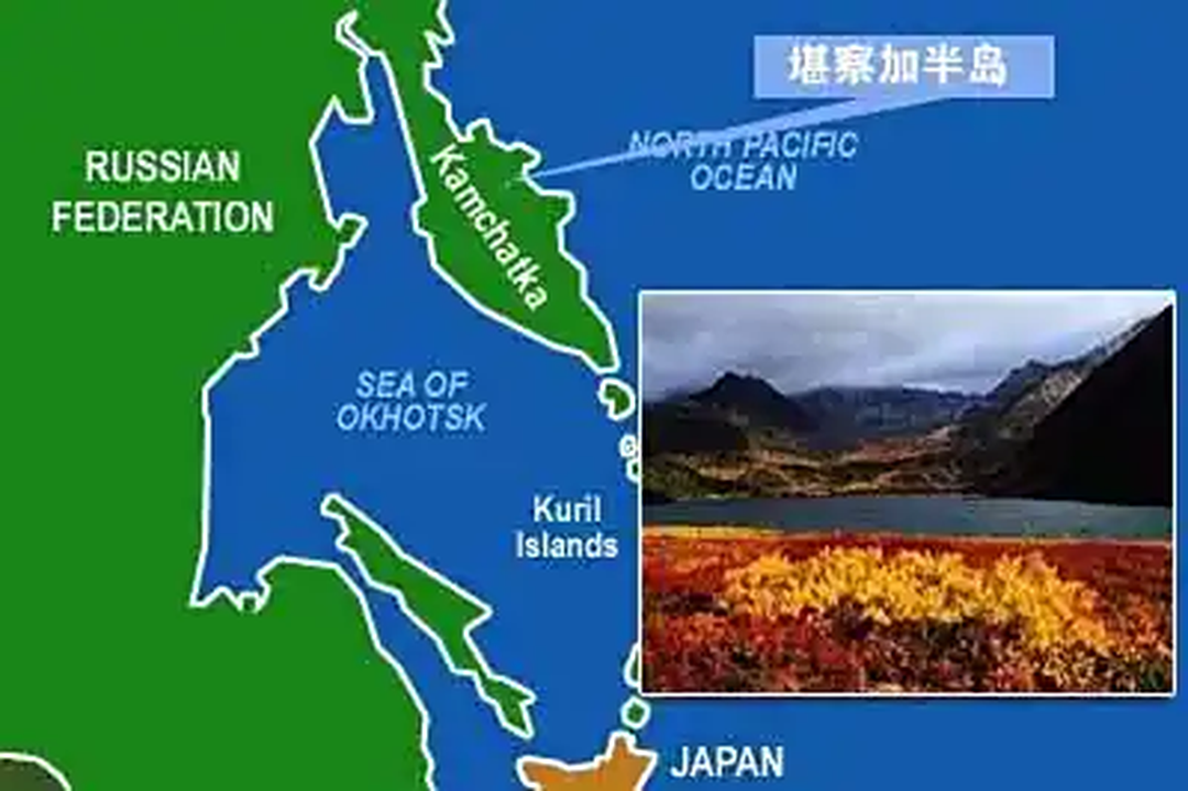 堪察加半岛从俄罗斯东北向西南延伸1200多公里,北部以宽仅100公里的地峡与大陆相连,面积37万平方公里;