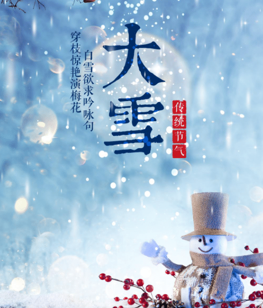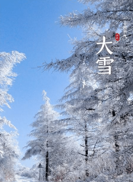 “大雪”是反映气候特征的一个节气,大雪节气的特点是气温显著下降、降水量增多。大雪时节,中国大部分地区已进入冬季,最低温度都降到了0℃或以下,在强冷空气前沿冷暖空气交锋的地区,会降大雪,甚至暴雪。此时,黄河流域一带已渐有积雪,而在更北的地方,则大雪纷飞了。
