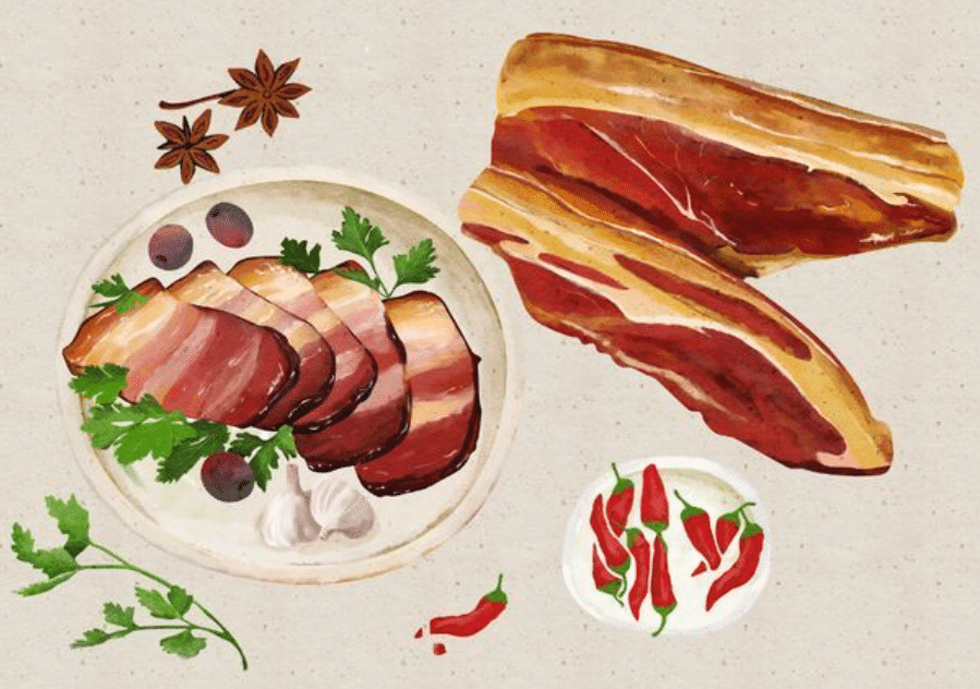 老南京有句俗语,叫做“小雪腌菜,大雪腌肉”。大雪节气一到,家家户户忙着腌制“咸货”。将大盐加八角、桂皮、花椒、白糖等入锅炒熟,待炒过的花椒盐凉透后,涂抹在鱼、肉和光禽内外,反复揉搓,直到肉色由鲜转暗,表面有液体渗出时,再把肉连剩下的盐放进缸内,用石头压住,放在阴凉背光的地方,半月后取出,将腌出的卤汁入锅加水烧开,撇去浮沫,放入晾干的禽畜肉,一层层码在缸内,倒入盐卤,再压上大石头,十日后取出,挂在朝阳的屋檐下晾晒干,以迎接新年。