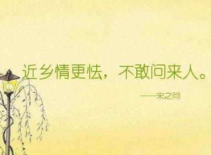 “近乡情更怯”出自《渡汉江》。《渡汉江》是宋之问的诗中流传最为广泛的一首小诗,它之所以动人,自有其独到的地方。宋之问一生曾经历两次流放,第一次流放岭南是在神龙元年(705)春被贬为泷州(今广东罗定县)参军,第二年便逃归洛阳,匿居友人张仲之家里。这首小诗就是他逃归途中所作。现今常用“近乡情更怯,不敢问来人”两句诗,来形容久别故乡的游子归返家园时,复杂的心情。