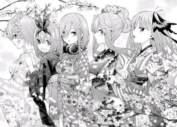 在一花跟二乃争论自己的礼物哪个比较好的时候见到了同样在给风太郎准备生日礼物的三玖跟四叶。四人讨论一番后,在风太郎生日当天折了五只用满分试卷做的纸鹤送给了在图书馆打瞌睡的风太郎。