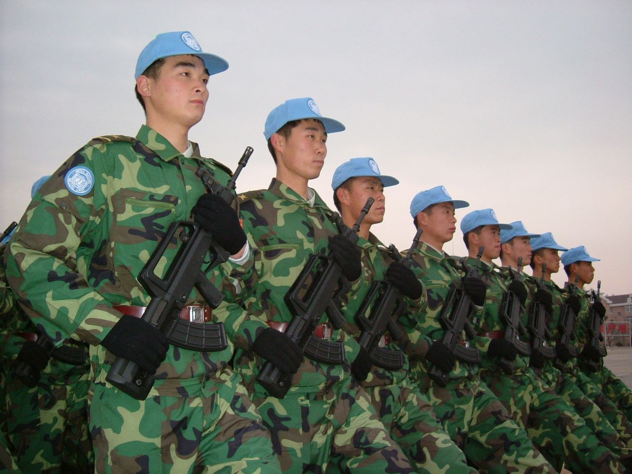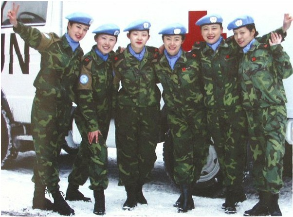 中国共有10支维和部队共1546人在4个联合国任务区执行维和任务。4个任务区分别在刚果(金)、利比里亚黎巴嫩和苏丹、马里。至今,中国已累计派出维和官兵2.2万人次,先后有17 名军人在执行维和任务中牺牲。中国派出的维和部队主要以医疗、工兵等为主。20年来,中国派出的维和部队先后勘察、修筑道路7300多公里、桥梁200多座,接诊、收治病人28000多人次、实施手术230多例,运输人员、物资累计行程348万多公里,排除地雷等各种不明爆炸物7500多枚。枪械:一般为九五式突击步枪。